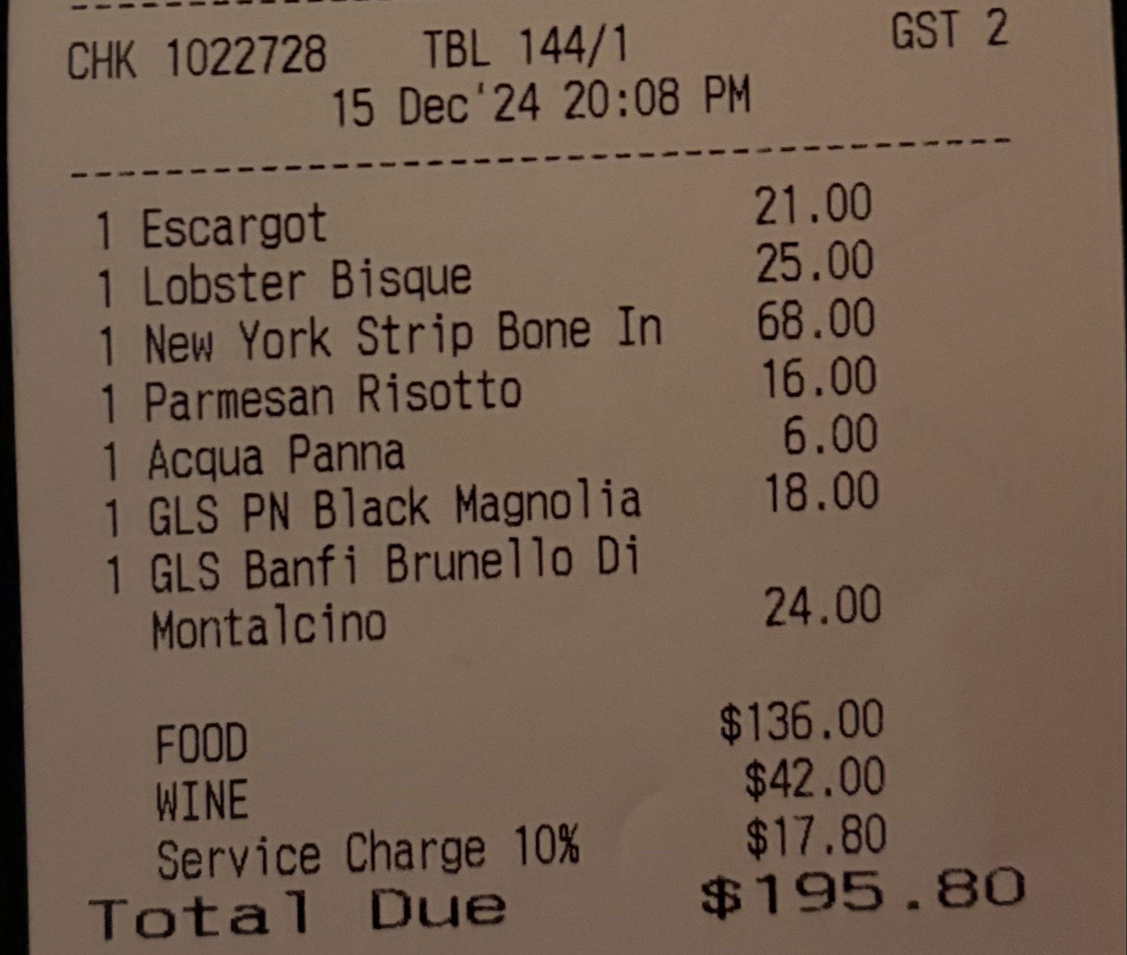 이렇게 먹고 나온 가격은 약 30만 원. 당시 윤석열 계엄령으로 환율이 치솟았던 시점이기도 해서 더 비쌌던 것 같습니다.