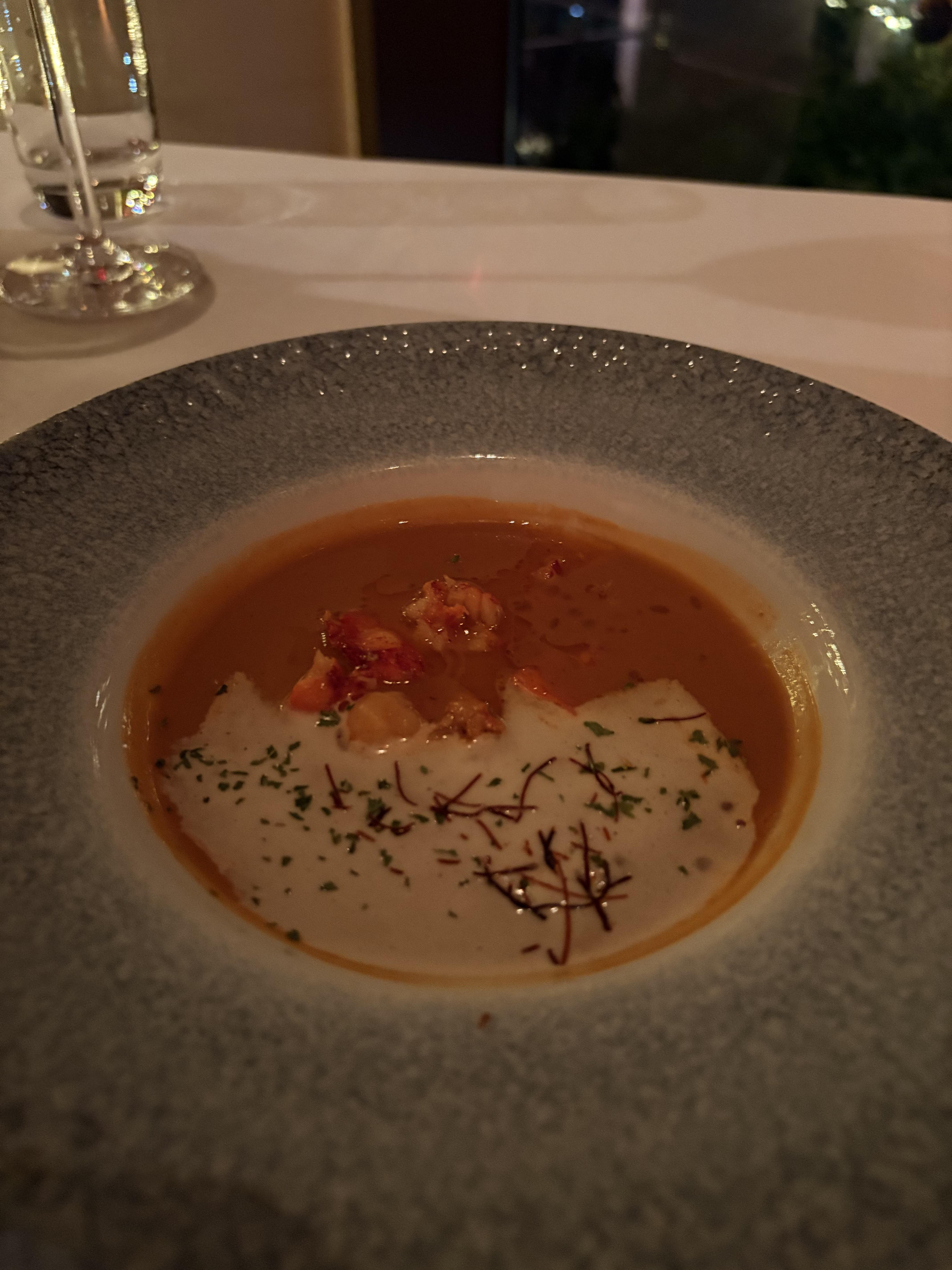식전빵과 함께 나온 파마산 리조또와 랍스터 스프가 나왔습니다. 식전빵과 파마산 리조또, 랍스터 스프까지는 정말 맛있었습니다.