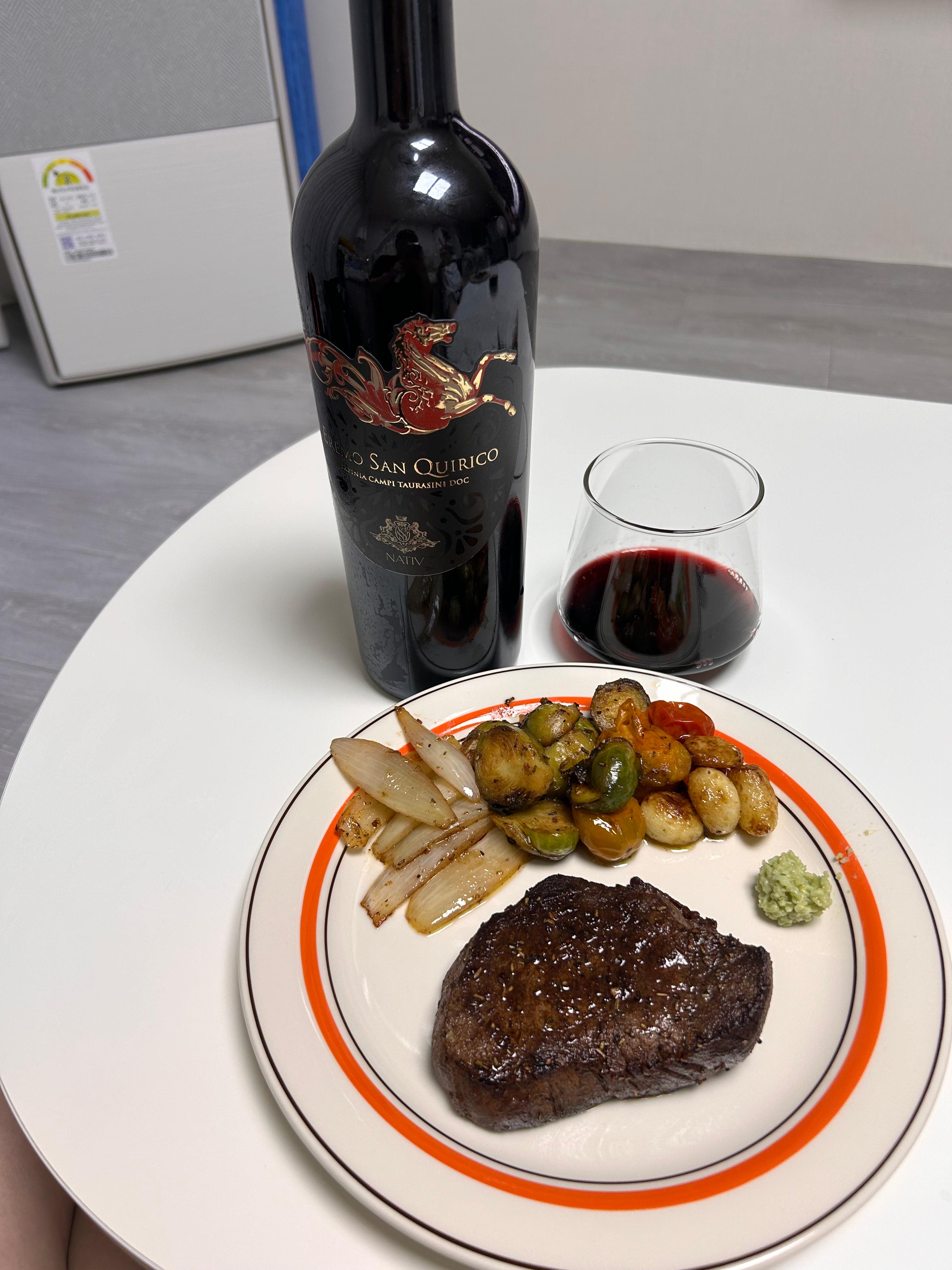 페어링은 스테이크와 먹었는데 굉장히 잘 어울렸습니다. 스테이크 외에 양고기나 파스타와도 잘 매칭된다고 합니다.