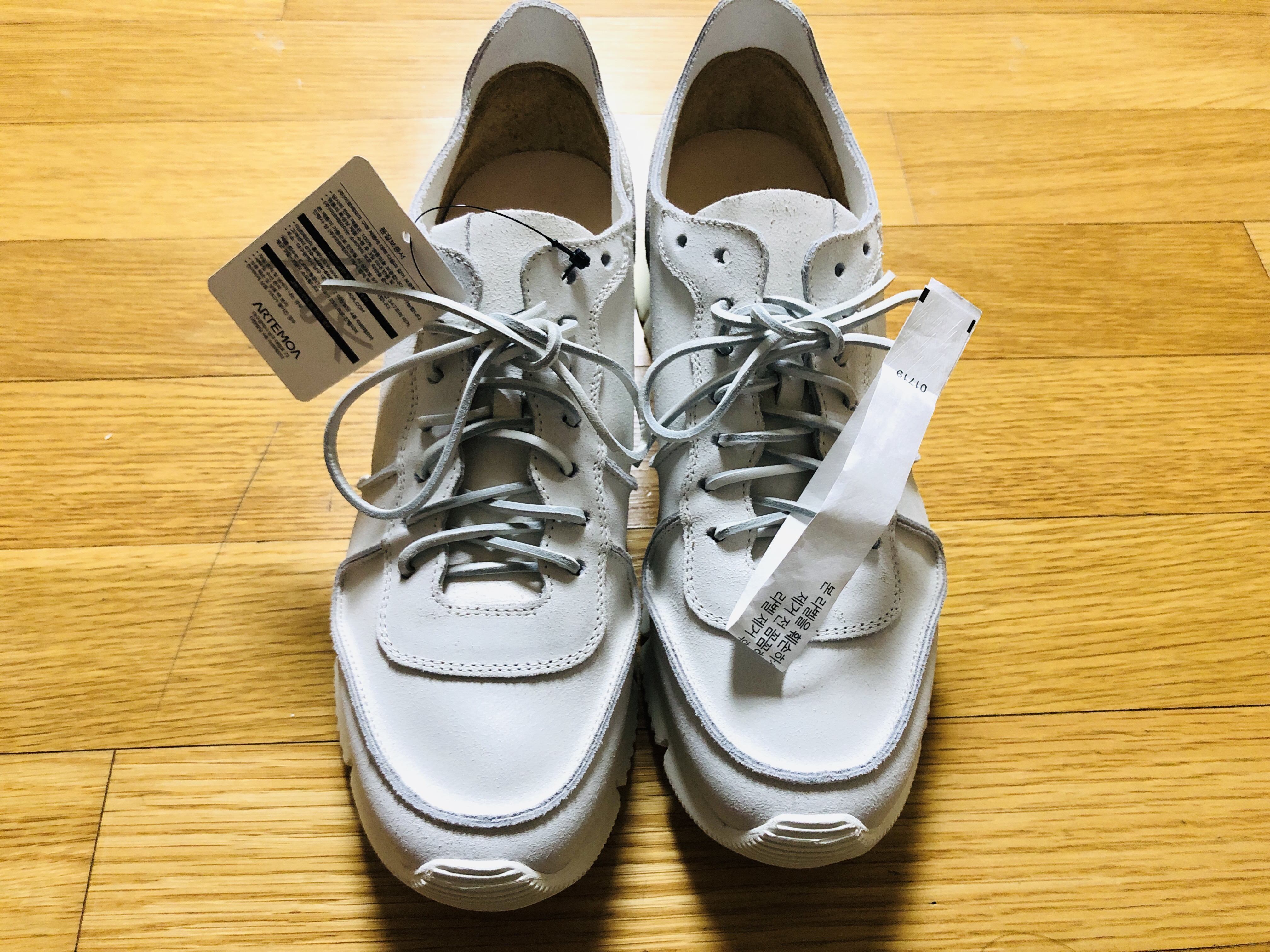 몇 번 신으니 때가 많이 묻긴 하는데.. 가죽 구겨짐도 보이면서 그 자체로의 멋이 조금씩 생기는 듯 합니다.